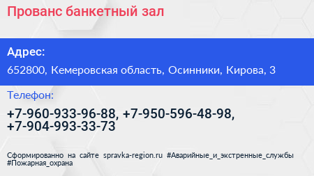Прованс, банкетный зал по адресу 652800, Кемеровская область, Осинники, Кирова, 3 в дальнейшем Организация, размещена в следующих категориях: