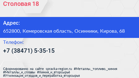 Столовая №18 по адресу 652800, Кемеровская область, Осинники, Кирова, 68 в дальнейшем Организация, размещена в следующих категориях: