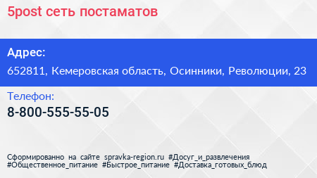 5post, сеть постаматов по адресу 652811, Кемеровская область, Осинники, Революции, 23 в дальнейшем Организация, размещена в следующих категориях: