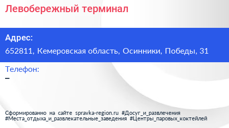 Левобережный, терминал по адресу 652811, Кемеровская область, Осинники, Победы, 31 в дальнейшем Организация, размещена в следующих категориях: