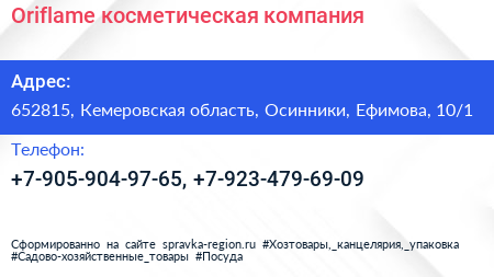 Oriflame, косметическая компания по адресу 652815, Кемеровская область, Осинники, Ефимова, 10/1 в дальнейшем Организация, размещена в следующих категориях: