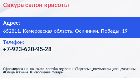 Сакура, салон красоты по адресу 652811, Кемеровская область, Осинники, Победы, 19 в дальнейшем Организация, размещена в следующих категориях: