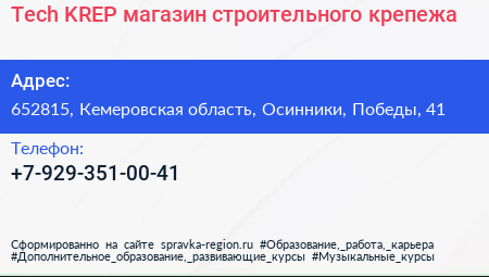 Tech-KREP, магазин строительного крепежа по адресу 652815, Кемеровская область, Осинники, Победы, 41 в дальнейшем Организация, размещена в следующих категориях: