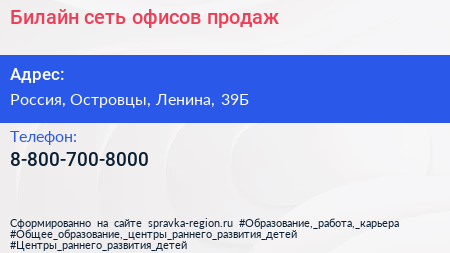 Билайн, сеть офисов продаж по адресу Торговый комплекс "Октябрёнок", 39Б, улица Ленина, Михнево, Октябрьский, городской округ Люберцы, Московская область, Центральный федеральный округ, 140060, Россия в дальнейшем Организация, размещена в следующих категориях: