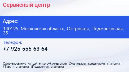Сервисный центр по адресу 140125, Московская область, Островцы, Подмосковная, 35 в дальнейшем Организация, размещена в следующих категориях: