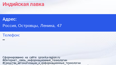 Индийская лавка по адресу Торговый комплекс "Текстиль-Профи", 47, улица Ленина, Михнево, Октябрьский, городской округ Люберцы, Московская область, Центральный федеральный округ, 140060, Россия в дальнейшем Организация, размещена в следующих категориях: