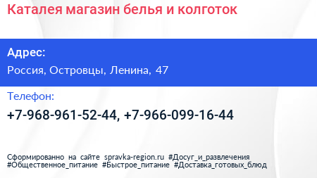 Каталея, магазин белья и колготок по адресу Торговый комплекс "Текстиль-Профи", 47, улица Ленина, Михнево, Октябрьский, городской округ Люберцы, Московская область, Центральный федеральный округ, 140060, Россия в дальнейшем Организация, размещена в следующих категориях: