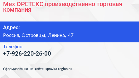 Мех ОРЕТЕКС, производственно-торговая компания по адресу Торговый комплекс "Текстиль-Профи", 47, улица Ленина, Михнево, Октябрьский, городской округ Люберцы, Московская область, Центральный федеральный округ, 140060, Россия в дальнейшем Организация, размещена в следующих категориях:
