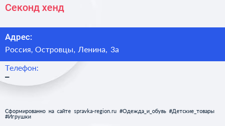 Секонд-хенд по адресу Торговый комплекс "Сота", 3А, улица Ленина, Михнево, Октябрьский, городской округ Люберцы, Московская область, Центральный федеральный округ, 140060, Россия в дальнейшем Организация, размещена в следующих категориях: