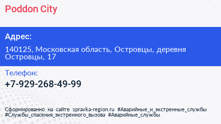 Poddon City по адресу 140125, Московская область, Островцы, деревня Островцы, 17 в дальнейшем Организация, размещена в следующих категориях: