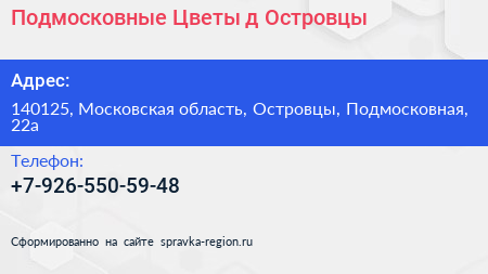 Подмосковные Цветы, д. Островцы по адресу 140125, Московская область, Островцы, Подмосковная, 22а в дальнейшем Организация, размещена в следующих категориях:
