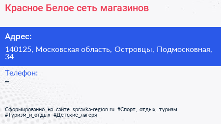 Красное & Белое, сеть магазинов по адресу 140125, Московская область, Островцы, Подмосковная, 34 в дальнейшем Организация, размещена в следующих категориях: