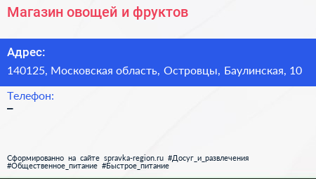 Магазин овощей и фруктов по адресу 140125, Московская область, Островцы, Баулинская, 10 в дальнейшем Организация, размещена в следующих категориях: