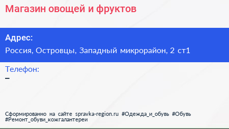 Магазин овощей и фруктов по адресу 2, Западный микрорайон, микрорайон Западный, Михнево, Октябрьский, городской округ Люберцы, Московская область, Центральный федеральный округ, 140060, Россия в дальнейшем Организация, размещена в следующих категориях:
