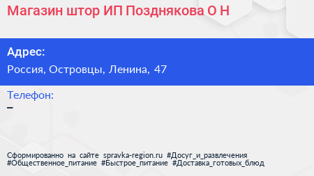 Магазин штор, ИП Позднякова О.Н. по адресу Торговый комплекс "Текстиль-Профи", 47, улица Ленина, Михнево, Октябрьский, городской округ Люберцы, Московская область, Центральный федеральный округ, 140060, Россия в дальнейшем Организация, размещена в следующих категориях: