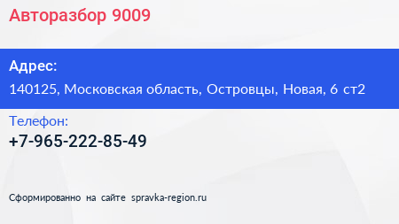 Авторазбор 9009 по адресу 140125, Московская область, Островцы, Новая, 6 ст2 в дальнейшем Организация, размещена в следующих категориях: