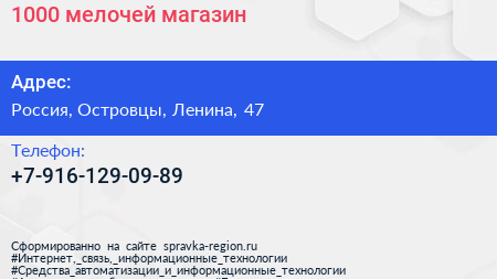 1000 мелочей, магазин по адресу Торговый комплекс "Текстиль-Профи", 47, улица Ленина, Михнево, Октябрьский, городской округ Люберцы, Московская область, Центральный федеральный округ, 140060, Россия в дальнейшем Организация, размещена в следующих категориях: