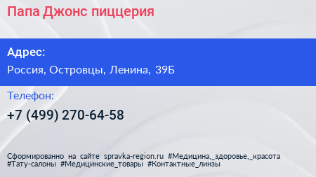 Папа Джонс, пиццерия по адресу Торговый комплекс "Октябрёнок", 39Б, улица Ленина, Михнево, Октябрьский, городской округ Люберцы, Московская область, Центральный федеральный округ, 140060, Россия в дальнейшем Организация, размещена в следующих категориях: