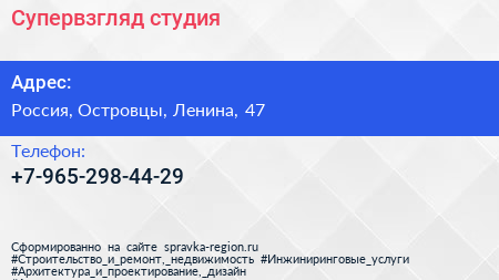 Супервзгляд, студия по адресу Торговый комплекс "Текстиль-Профи", 47, улица Ленина, Михнево, Октябрьский, городской округ Люберцы, Московская область, Центральный федеральный округ, 140060, Россия в дальнейшем Организация, размещена в следующих категориях: