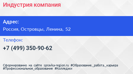 Для связи с организацией воспользуйтесь номером телефона: +7 (499) 350-90-62. Пн: c 09:00-18:00, Вт: c 09:00-18:00, Ср: c 09:00-18:00, Чт: c 09:00-18:00, Пт: c 09:00-18:00, Сб: выходной, Вс: выходной, вы можете обратиться в эту организацию.