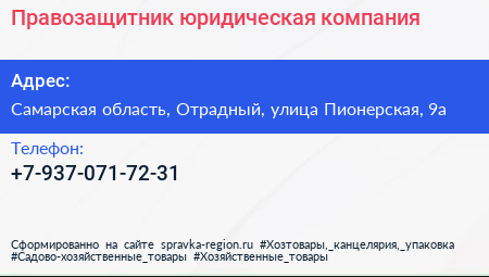 Правозащитник, юридическая компания по адресу Самарская область, Отрадный, улица Пионерская, 9а в дальнейшем Организация, размещена в следующих категориях: