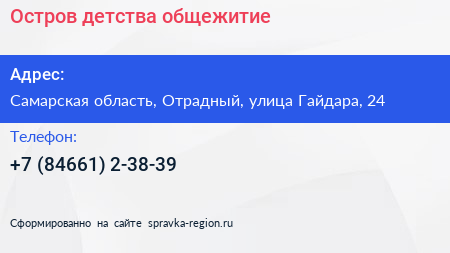Остров детства, общежитие по адресу Самарская область, Отрадный, улица Гайдара, 24 в дальнейшем Организация, размещена в следующих категориях: