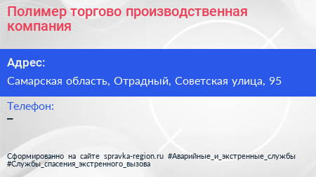 Полимер, торгово-производственная компания по адресу Самарская область, Отрадный, Советская улица, 95 в дальнейшем Организация, размещена в следующих категориях: