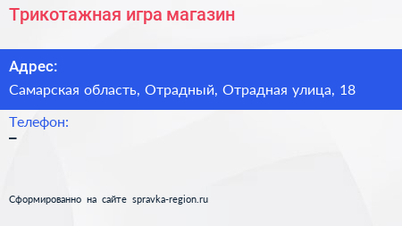 Трикотажная игра, магазин по адресу Самарская область, Отрадный, Отрадная улица, 18 в дальнейшем Организация, размещена в следующих категориях: