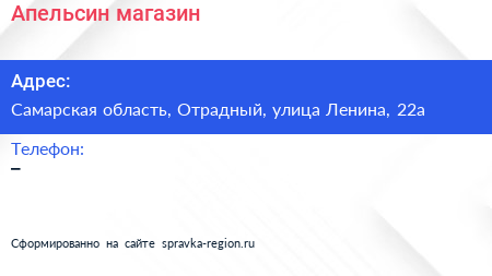 Апельсин, магазин по адресу Самарская область, Отрадный, улица Ленина, 22а в дальнейшем Организация, размещена в следующих категориях: