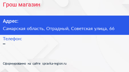 Грош, магазин по адресу Самарская область, Отрадный, Советская улица, 66 в дальнейшем Организация, размещена в следующих категориях: