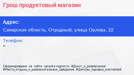 Грош, продуктовый магазин по адресу Самарская область, Отрадный, улица Орлова, 22 в дальнейшем Организация, размещена в следующих категориях: