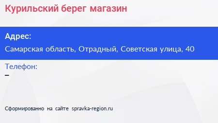 Курильский берег, магазин по адресу Самарская область, Отрадный, Советская улица, 40 в дальнейшем Организация, размещена в следующих категориях: