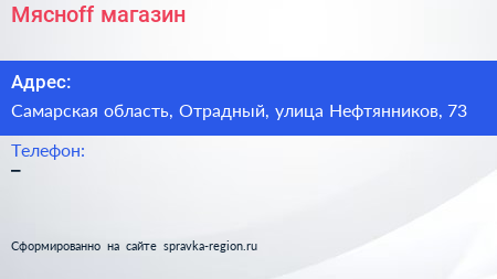 Мясноff, магазин по адресу Самарская область, Отрадный, улица Нефтянников, 73 в дальнейшем Организация, размещена в следующих категориях: