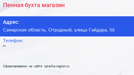 Пенная бухта, магазин по адресу Самарская область, Отрадный, улица Гайдара, 56 в дальнейшем Организация, размещена в следующих категориях: