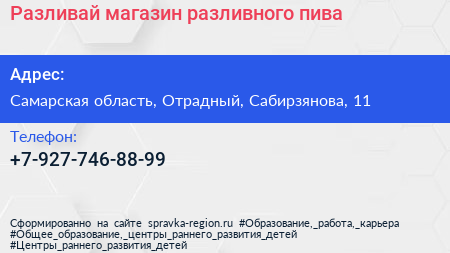 Разливай, магазин разливного пива по адресу Самарская область, Отрадный, Сабирзянова, 11 в дальнейшем Организация, размещена в следующих категориях: