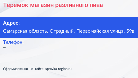 Теремок, магазин разливного пива по адресу Самарская область, Отрадный, Первомайская улица, 59в в дальнейшем Организация, размещена в следующих категориях: