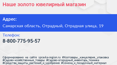 Наше золото, ювелирный магазин по адресу Самарская область, Отрадный, Отрадная улица, 19 в дальнейшем Организация, размещена в следующих категориях: