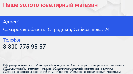 Наше золото, ювелирный магазин по адресу Самарская область, Отрадный, Сабирзянова, 24 в дальнейшем Организация, размещена в следующих категориях: