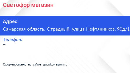 Светофор, магазин по адресу Самарская область, Отрадный, улица Нефтянников, 90д/1 в дальнейшем Организация, размещена в следующих категориях: