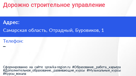 Дорожно-строительное управление по адресу Самарская область, Отрадный, Буровиков, 1 в дальнейшем Организация, размещена в следующих категориях: