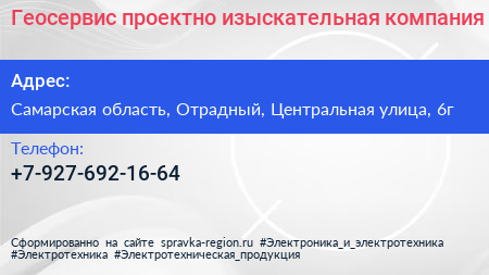 Геосервис, проектно-изыскательная компания по адресу Самарская область, Отрадный, Центральная улица, 6г в дальнейшем Организация, размещена в следующих категориях: