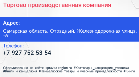 Торгово-производственная компания по адресу Самарская область, Отрадный, Железнодорожная улица, 59 в дальнейшем Организация, размещена в следующих категориях: