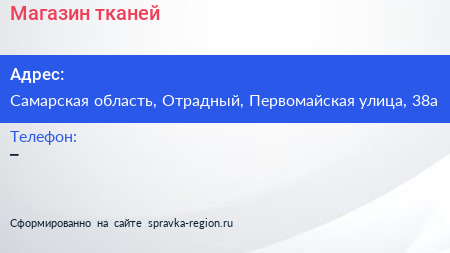 Магазин тканей по адресу Самарская область, Отрадный, Первомайская улица, 38а в дальнейшем Организация, размещена в следующих категориях: