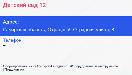 Детский сад №12 по адресу Самарская область, Отрадный, Отрадная улица, 8 в дальнейшем Организация, размещена в следующих категориях: