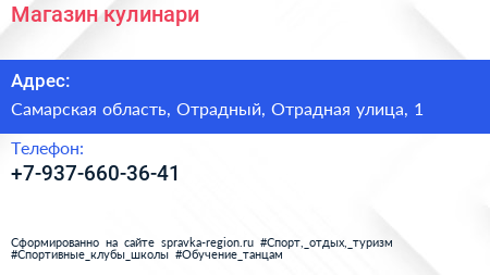 Магазин кулинари по адресу Самарская область, Отрадный, Отрадная улица, 1 в дальнейшем Организация, размещена в следующих категориях: