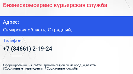 Бизнескомсервис, курьерская служба по адресу Самарская область, Отрадный, в дальнейшем Организация, размещена в следующих категориях: