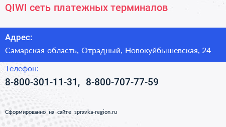 QIWI, сеть платежных терминалов по адресу Самарская область, Отрадный, Новокуйбышевская, 24 в дальнейшем Организация, размещена в следующих категориях: