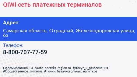 QIWI, сеть платежных терминалов по адресу Самарская область, Отрадный, Железнодорожная улица, 6а в дальнейшем Организация, размещена в следующих категориях: