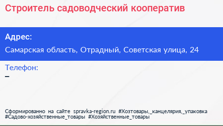 Строитель, садоводческий кооператив по адресу Самарская область, Отрадный, Советская улица, 24 в дальнейшем Организация, размещена в следующих категориях: