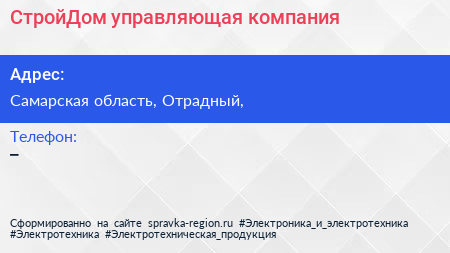 СтройДом, управляющая компания по адресу Самарская область, Отрадный, в дальнейшем Организация, размещена в следующих категориях: